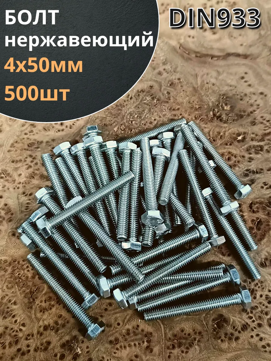 Болт нержавеющий М4х50 мм DIN 933, 500 шт.