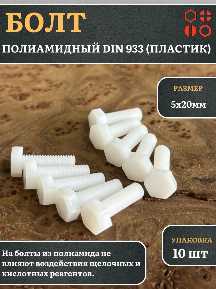 Болт полиамидный 5х20 мм DIN 933 (пластик), 4 шт. бп520933ф4 1 шт.