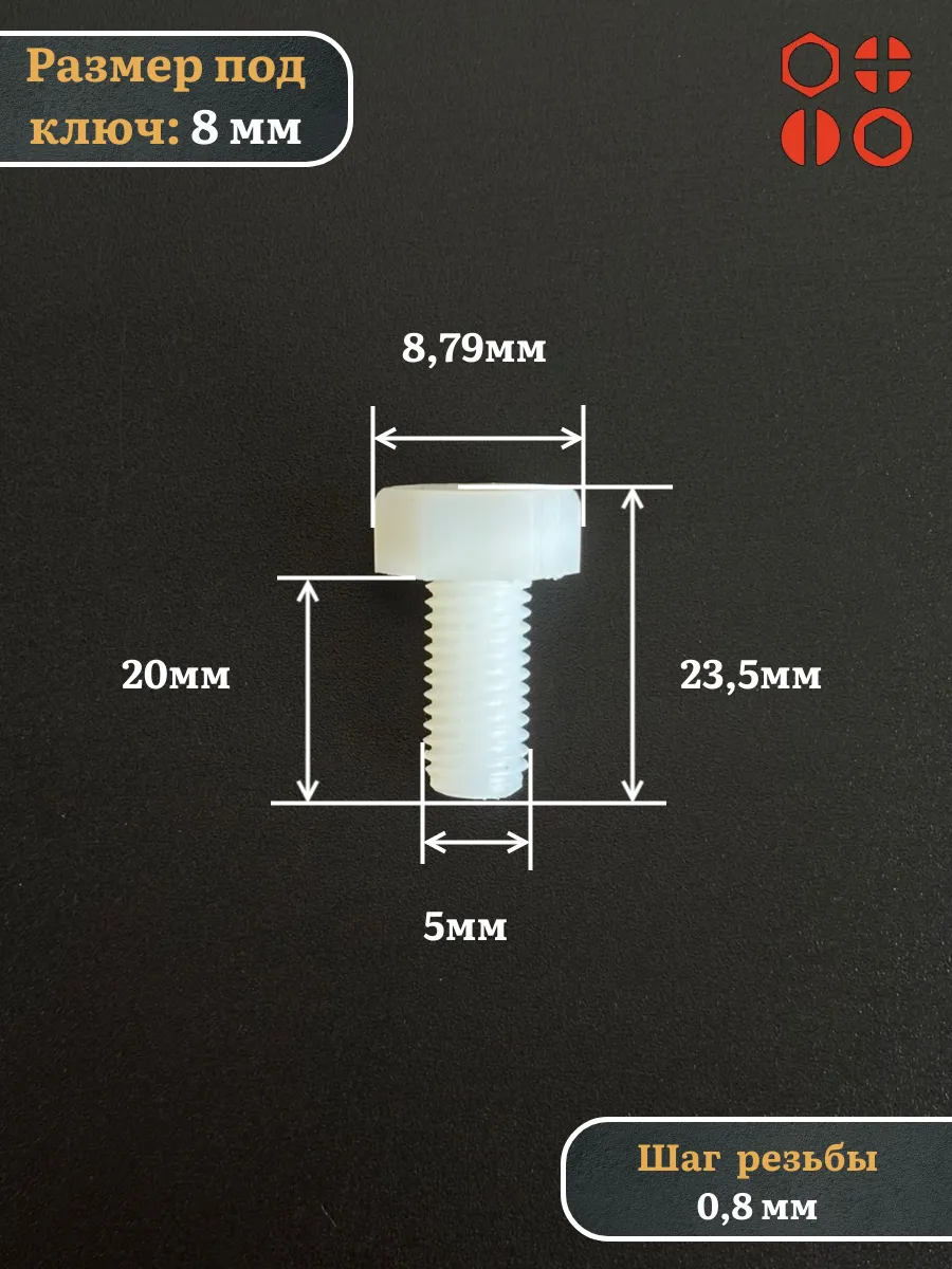 Болт полиамидный 5х20 мм DIN 933 (пластик), 10 шт.