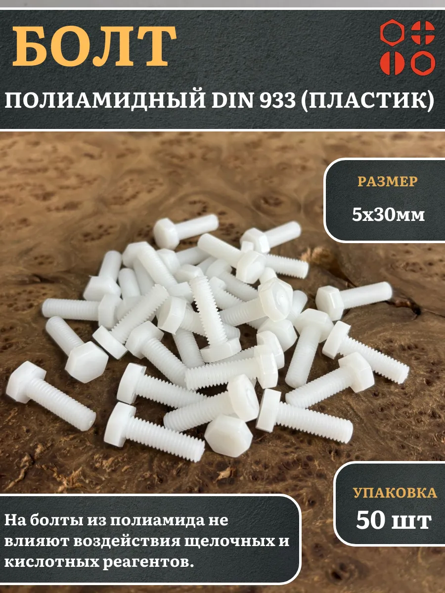Болт полиамидный 5х30 мм DIN 933 (пластик), 50 шт.
