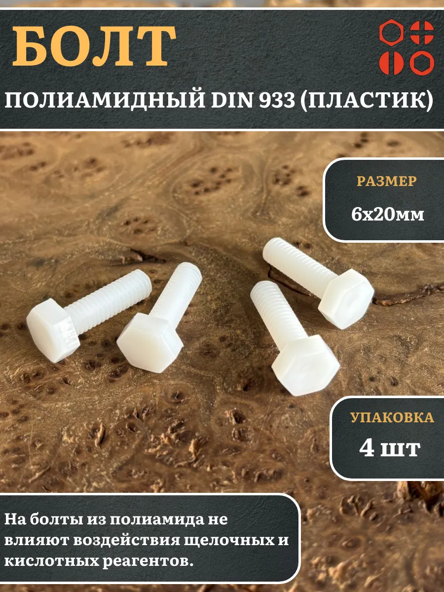 Болт полиамидный 6х20 мм DIN 933 (пластик), 4 шт.