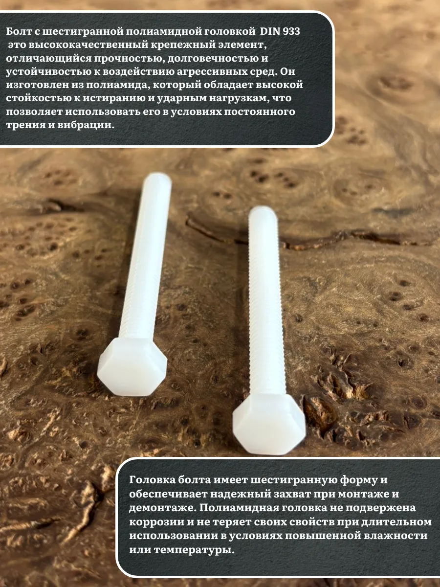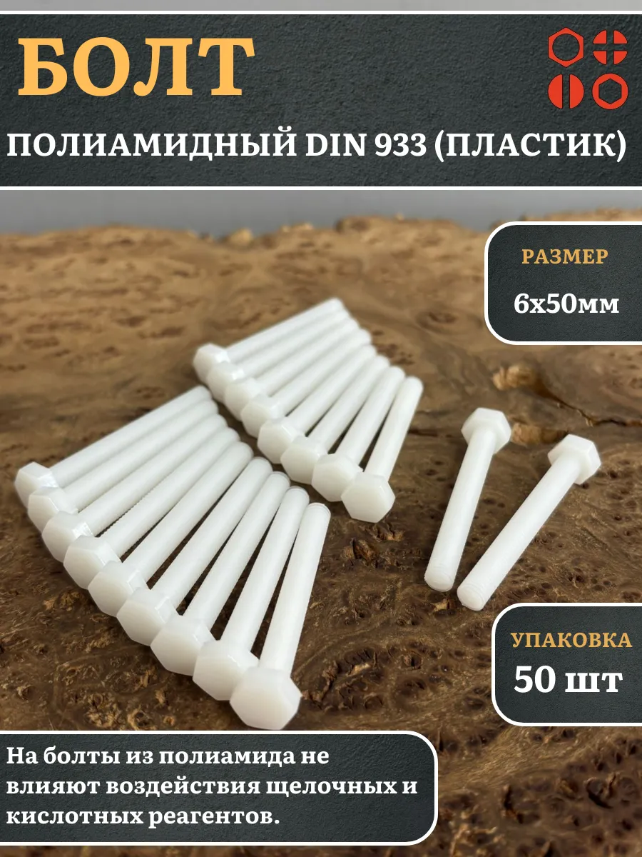 Болт полиамидный 6х50 мм DIN 933 (пластик), 50 шт.