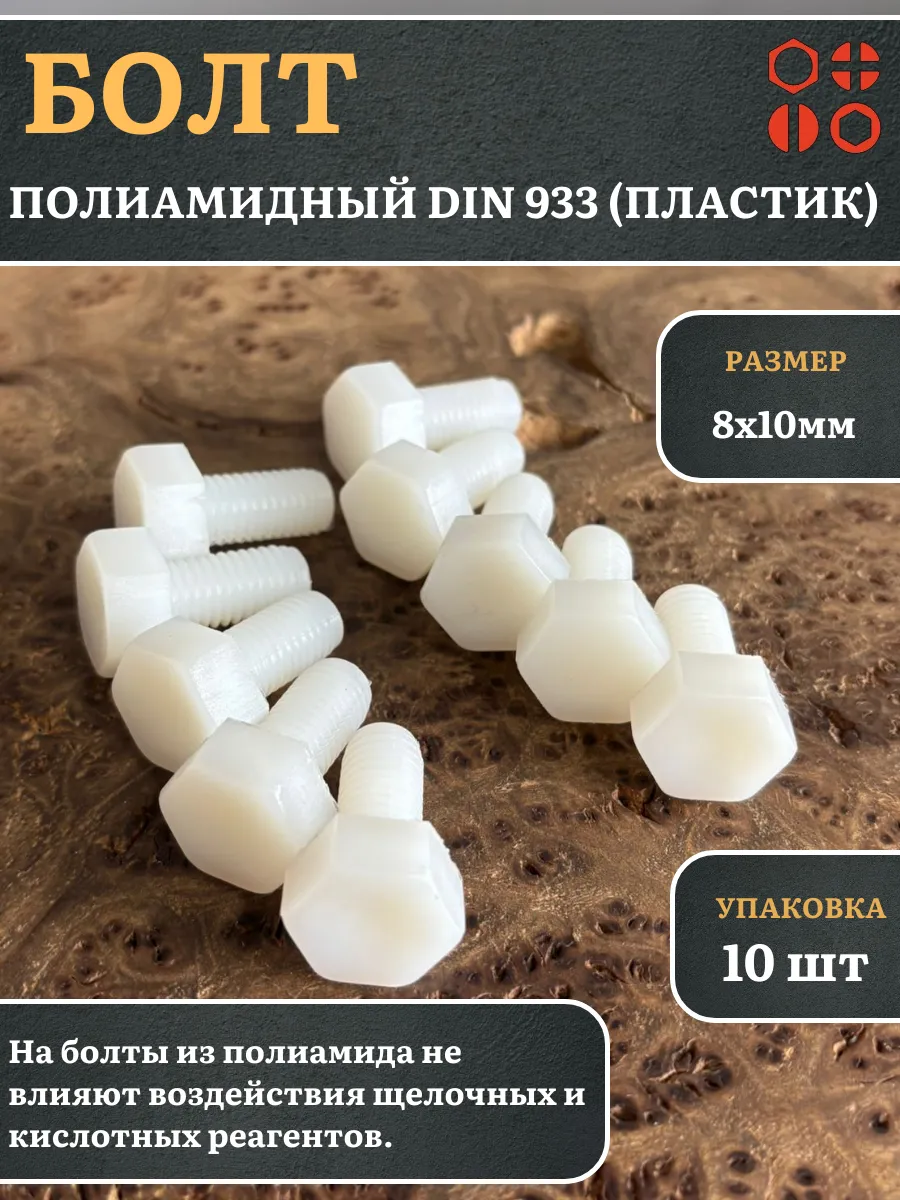 Болт полиамидный 8х10 мм DIN 933 (пластик), 50 шт. бп810933ф50 1 шт.
