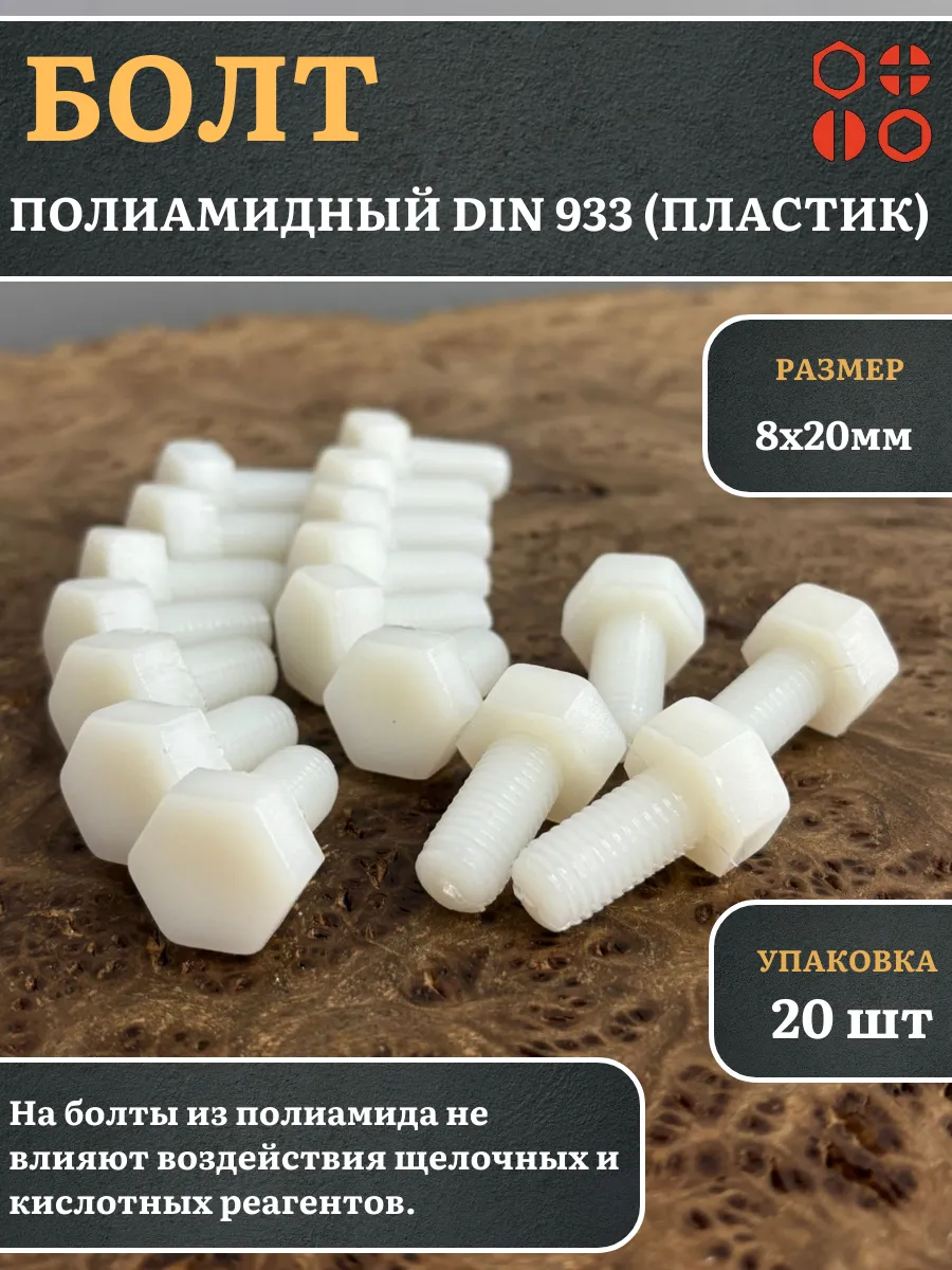 | Болт полиамидный 8х20 мм DIN 933 (пластик), 4 шт. | бп820933ф4 | 1 шт. |
