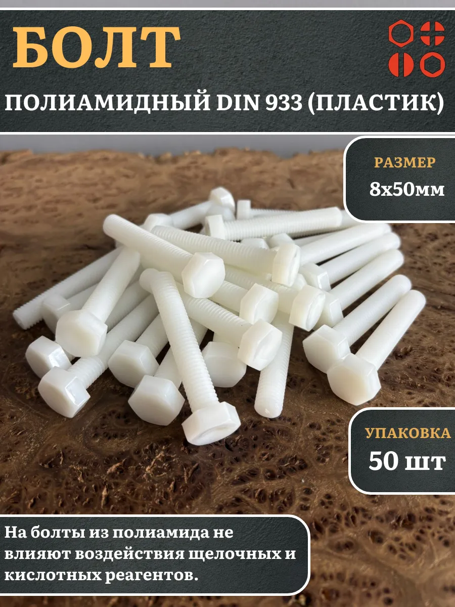 Болт полиамидный 8х50 мм DIN 933 (пластик), 50 шт.