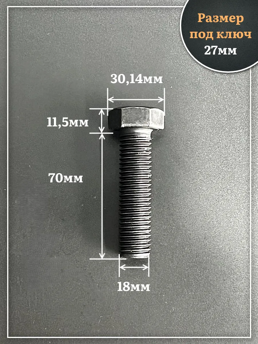 Болт высокопрочный чёрный 18х70 мм, к.п.10.9 DIN933, 2 шт.