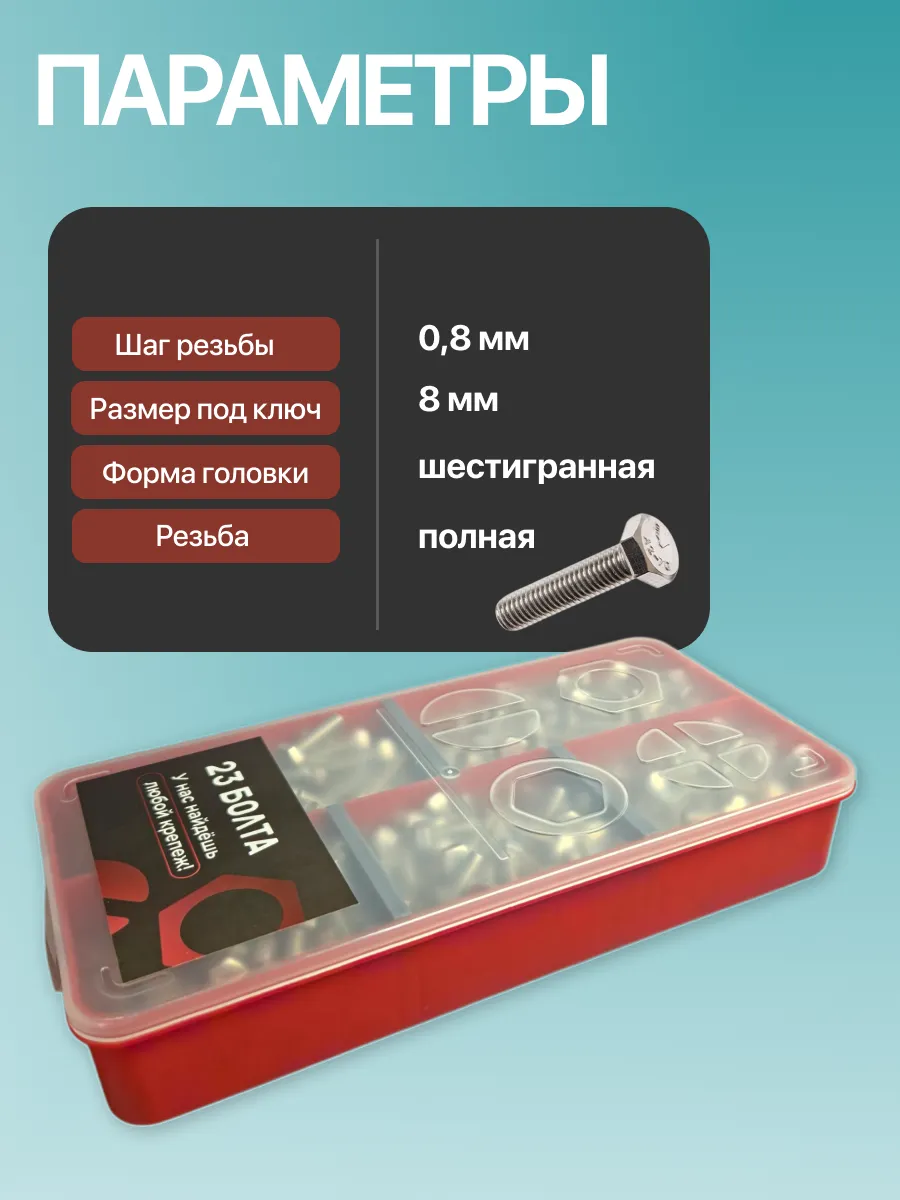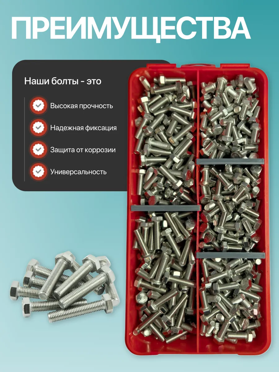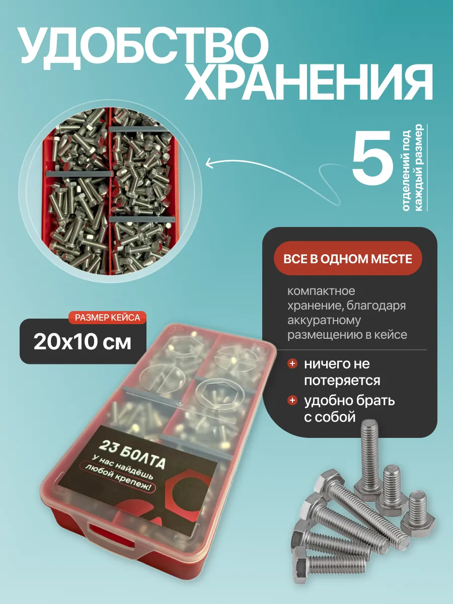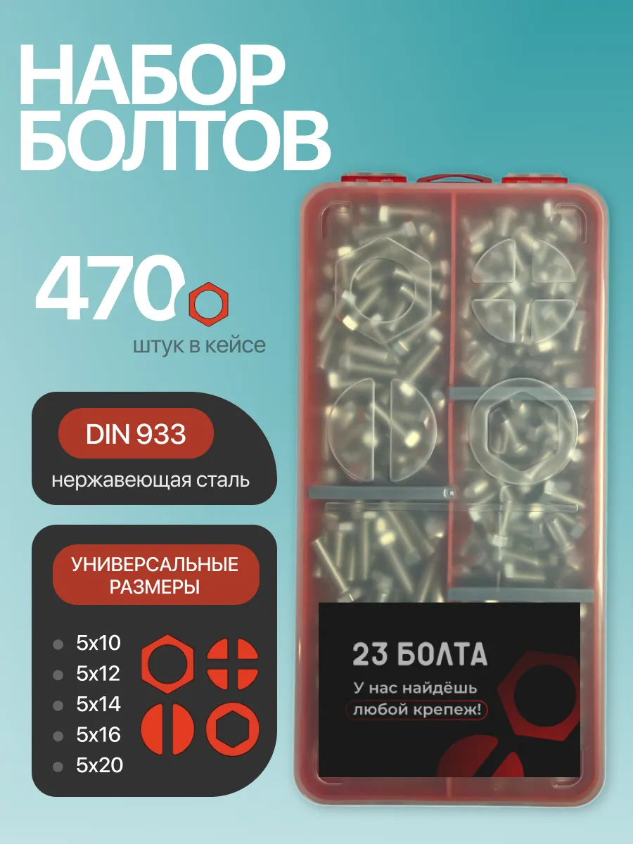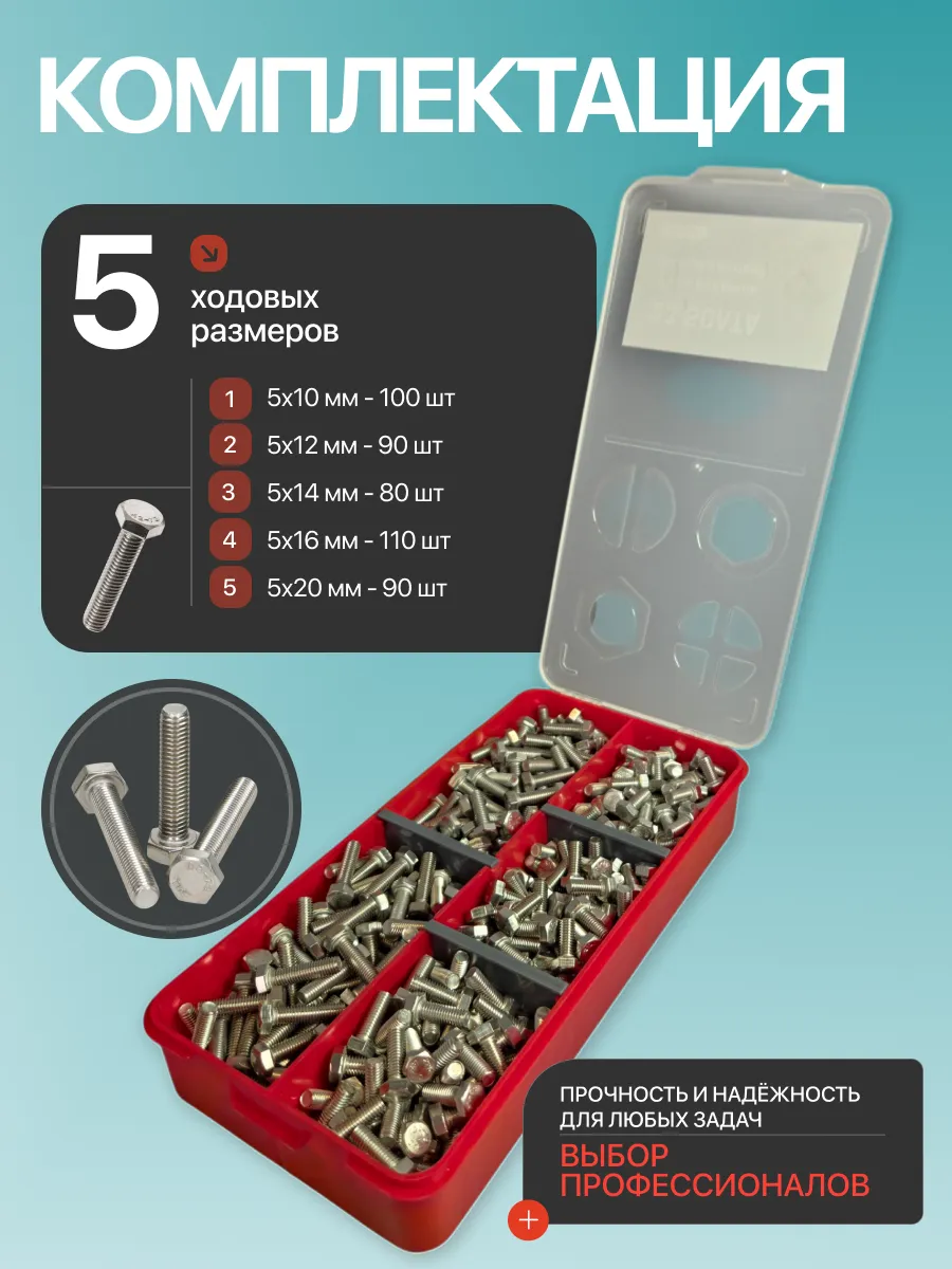 Болты нержавеющие М5 DIN933 в органайзере НАБОР 1