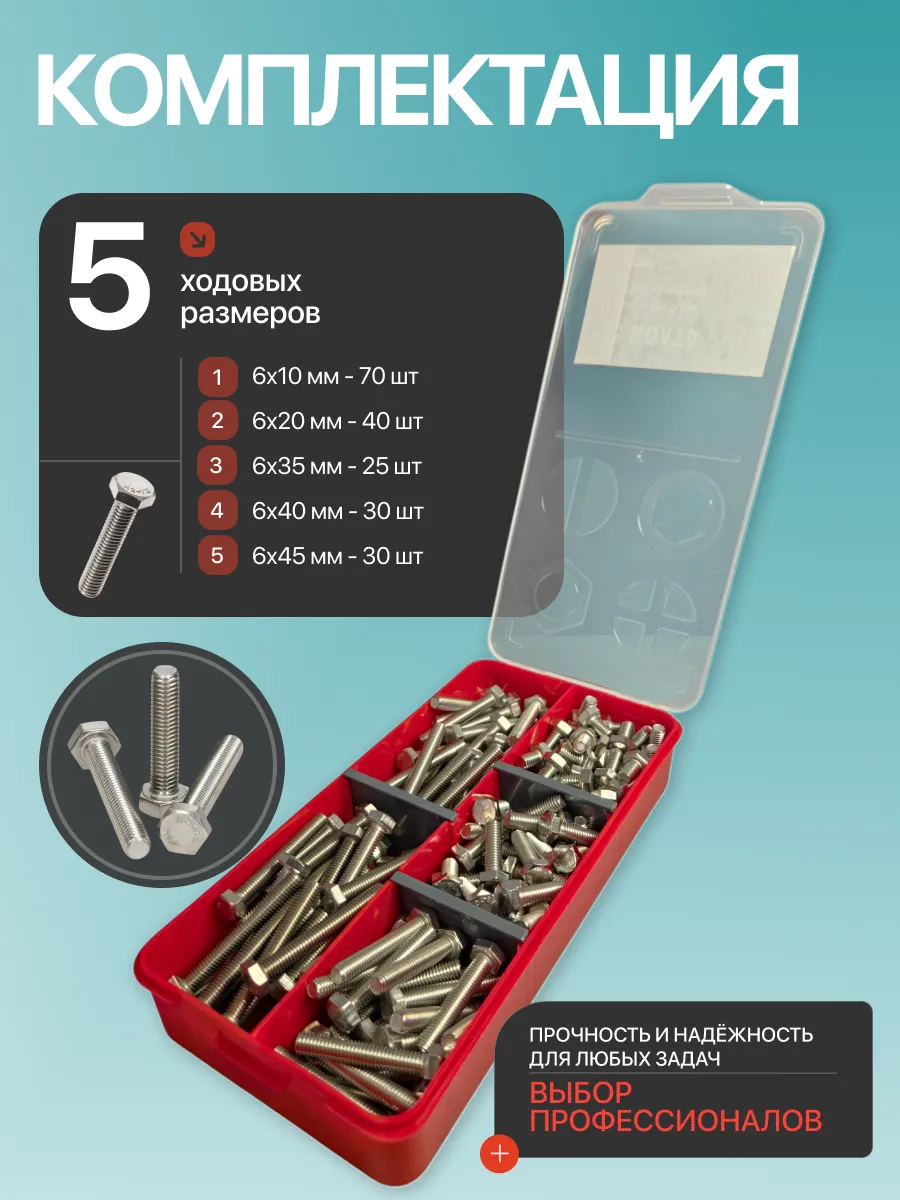 Болты нержавеющие М6 DIN933 в органайзере НАБОР 2