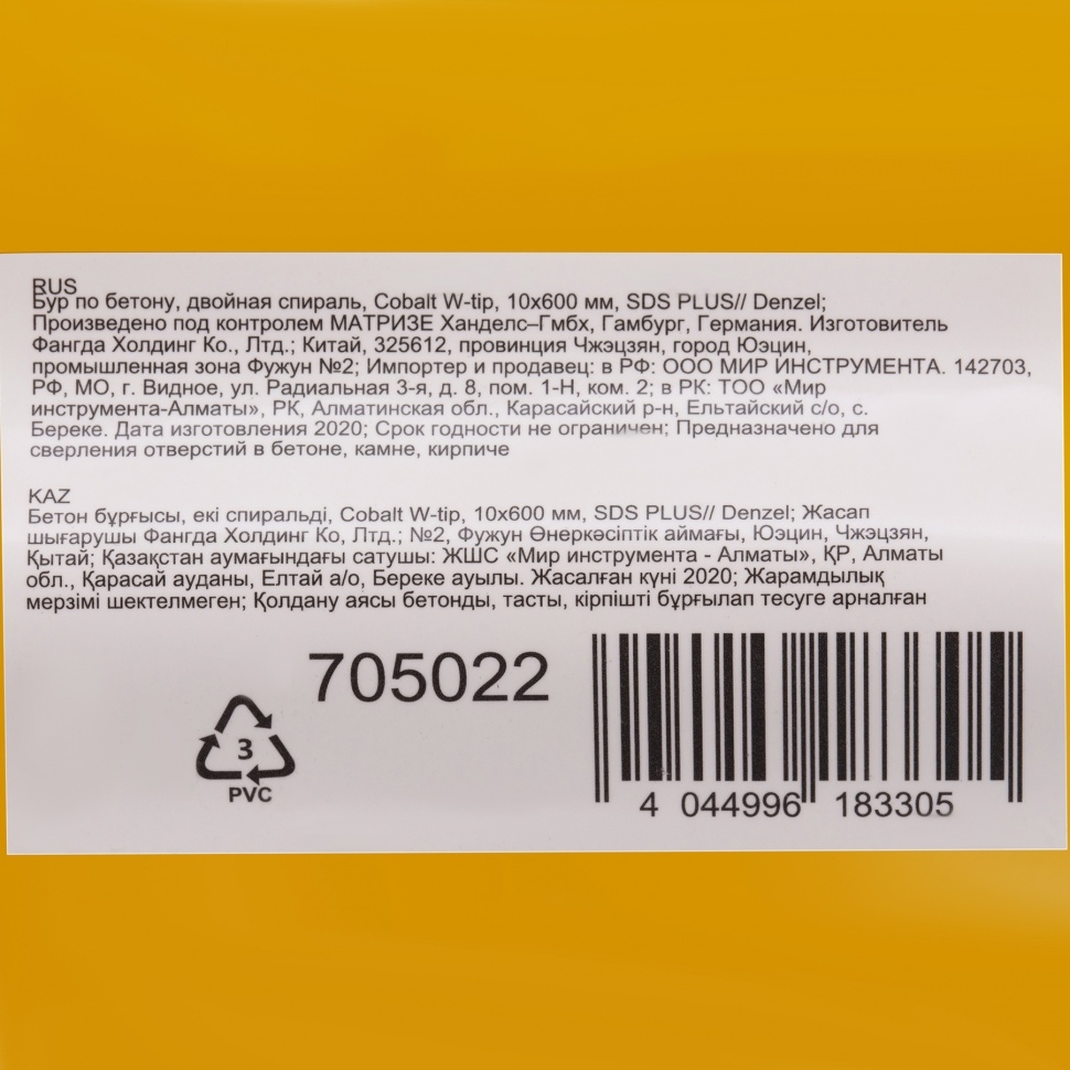 Бур по бетону Cobalt W-tip, двойная спираль, SDS-Plus, 10х600 мм Denzel