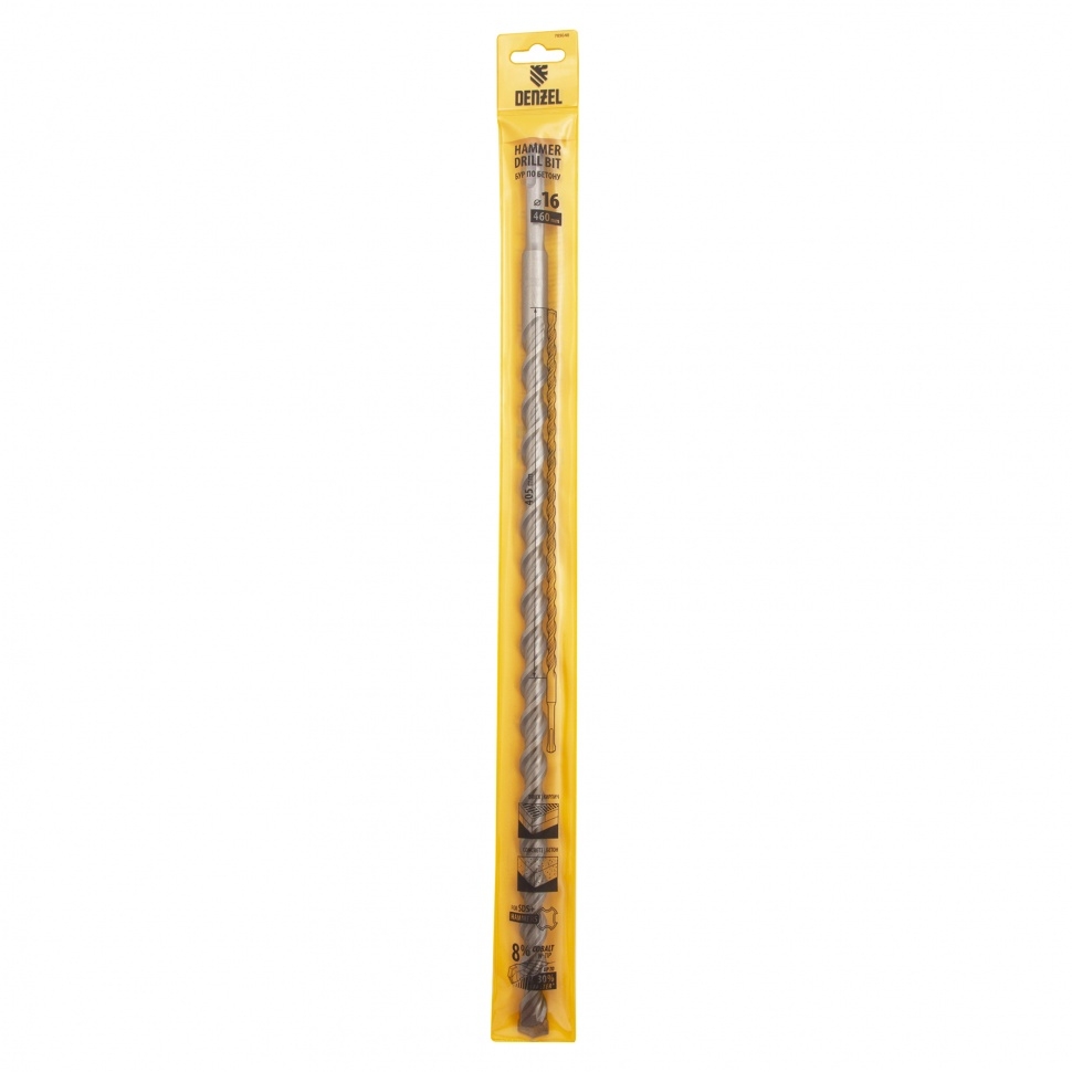 Бур по бетону Cobalt W-tip, двойная спираль, SDS-Plus, 16х460 мм Denzel