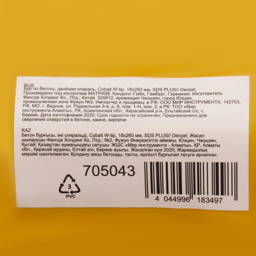 Бур по бетону Cobalt W-tip, двойная спираль, SDS-Plus, 18х260 мм Denzel