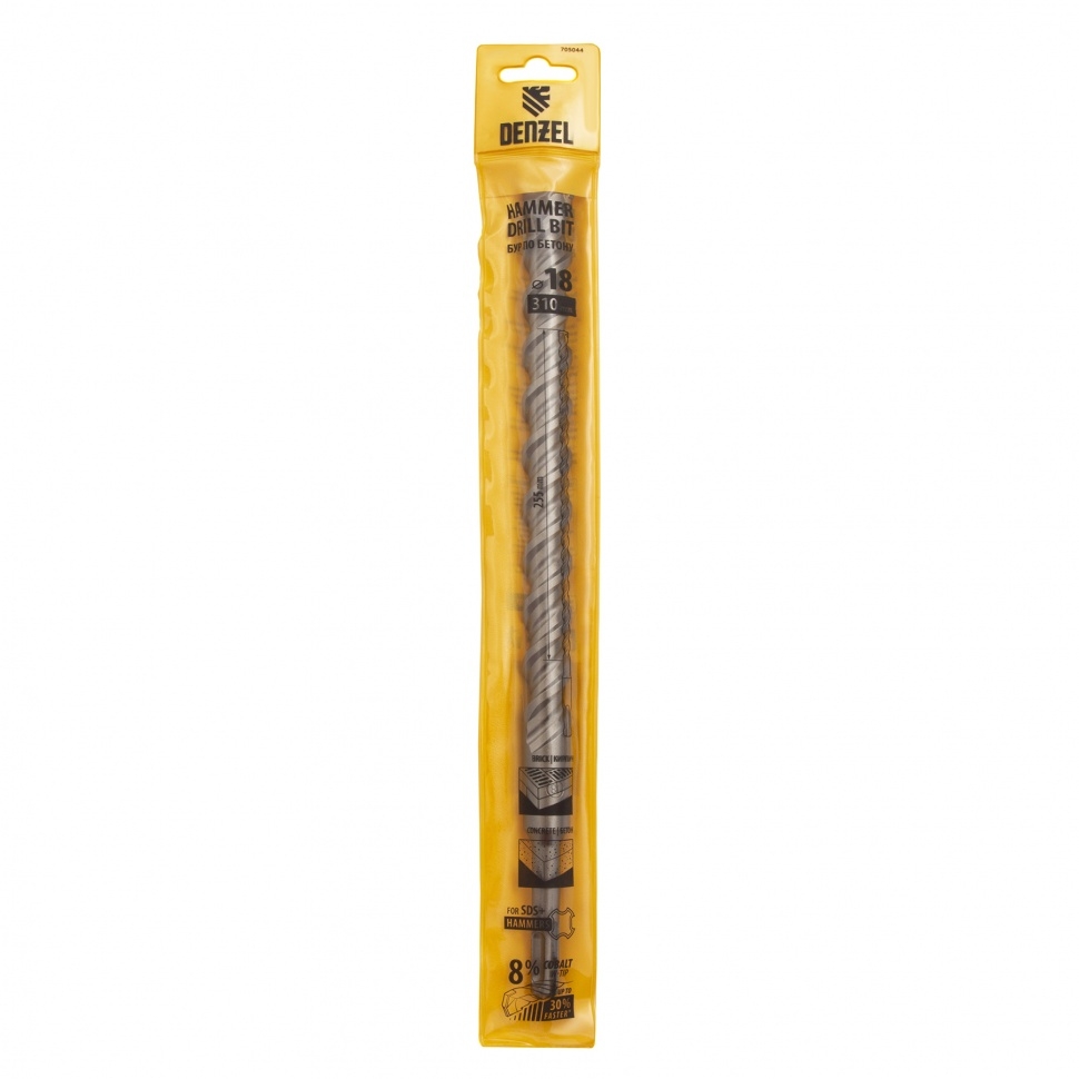 Бур по бетону Cobalt W-tip, двойная спираль, SDS-Plus, 18х310 мм Denzel