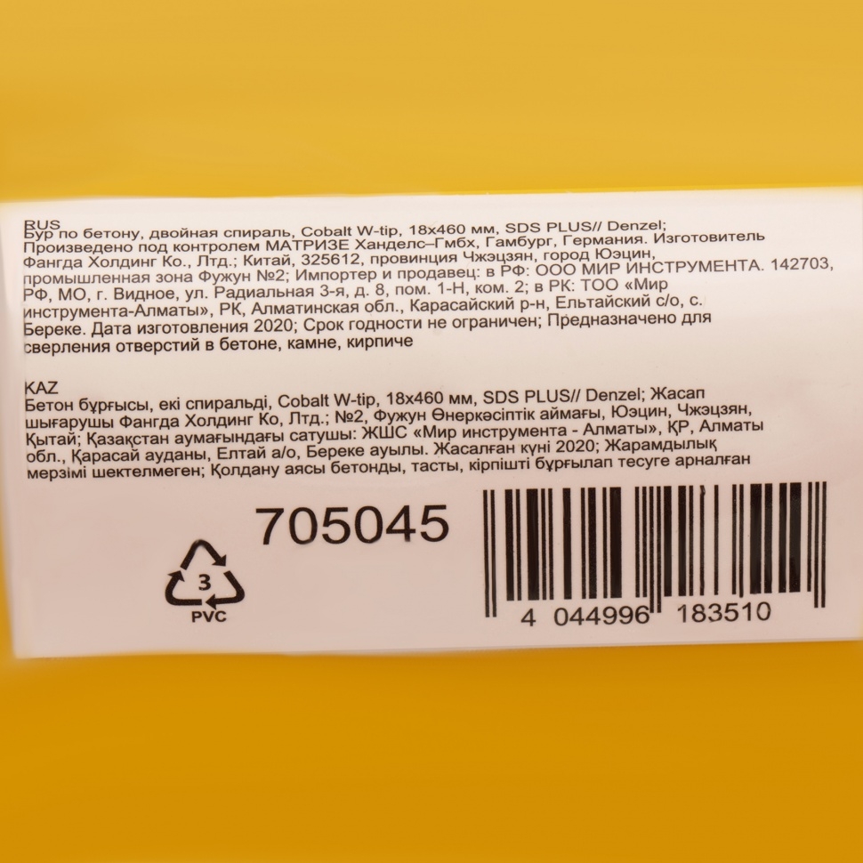 Бур по бетону Cobalt W-tip, двойная спираль, SDS-Plus, 18х460 мм Denzel