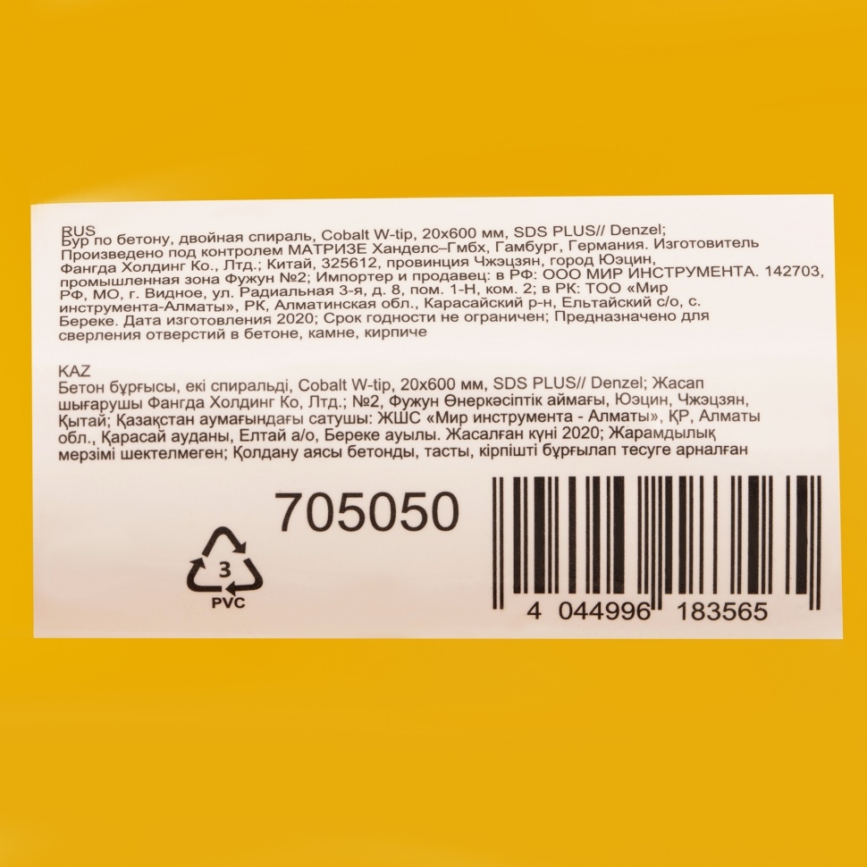 Бур по бетону Cobalt W-tip, двойная спираль, SDS-Plus, 20х600 мм Denzel