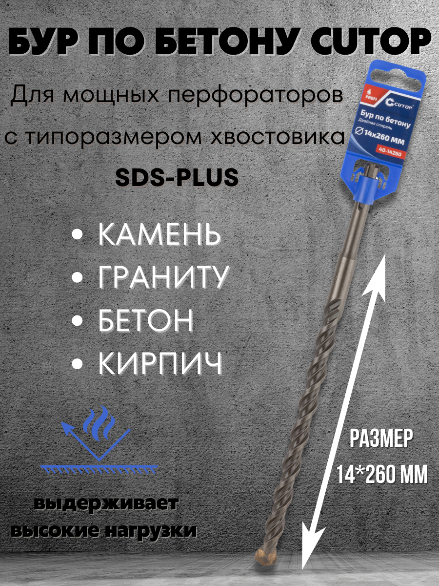 Бур по бетону CUTOP, Profi, двойная резьба, SDS-Plus, 14х260 мм