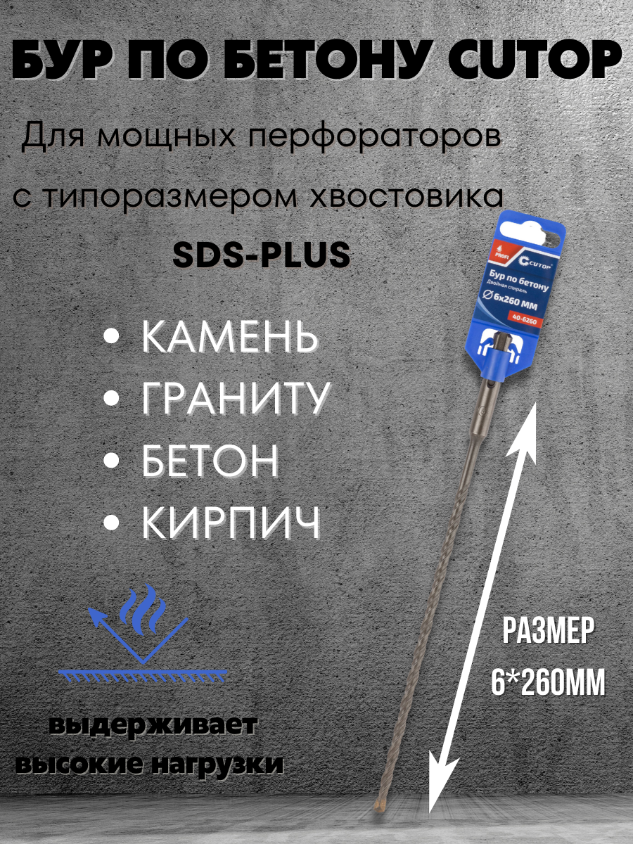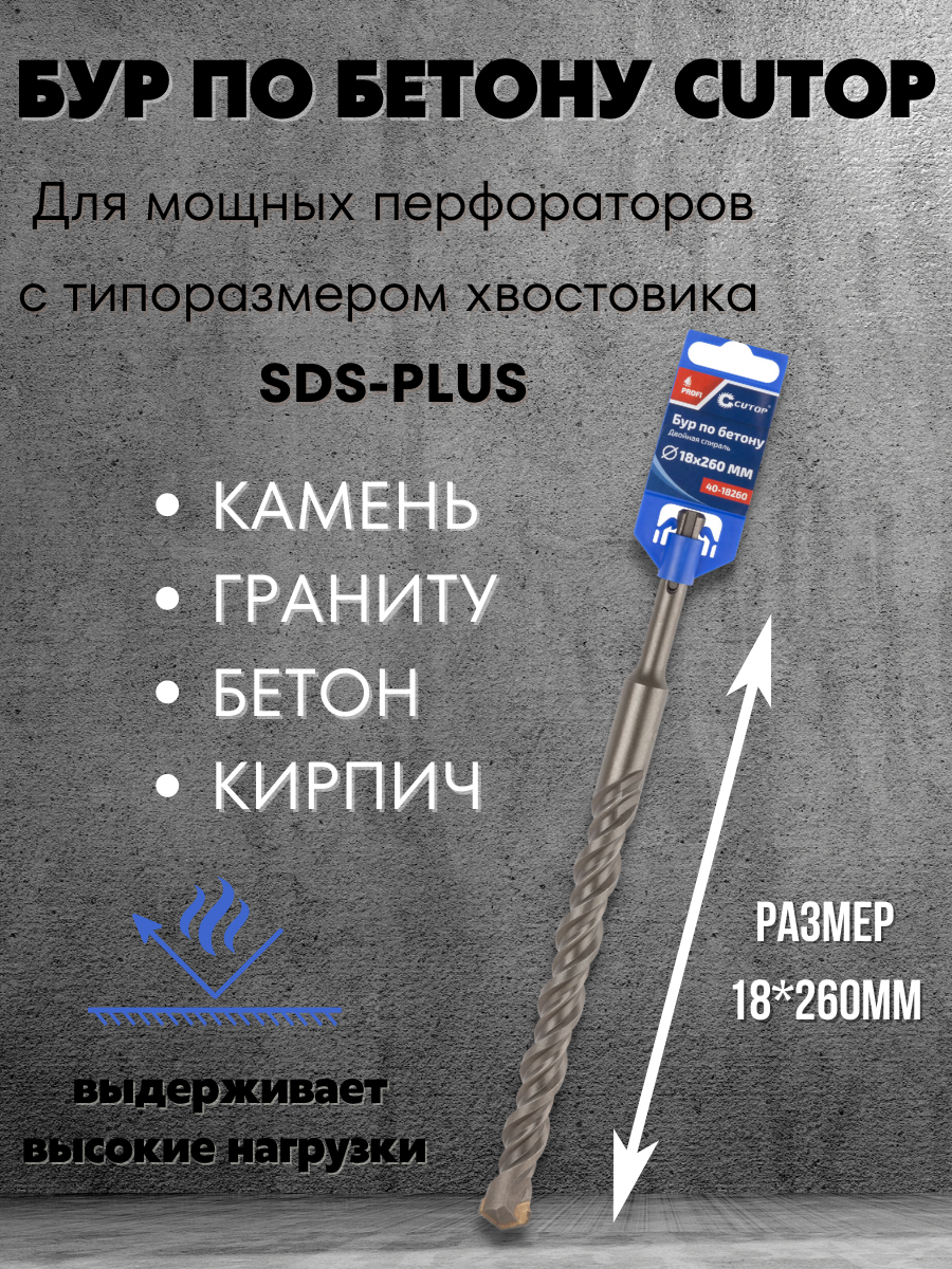 Бур по бетону CUTOP, Profi, двойная резьба, SDS-Plus,