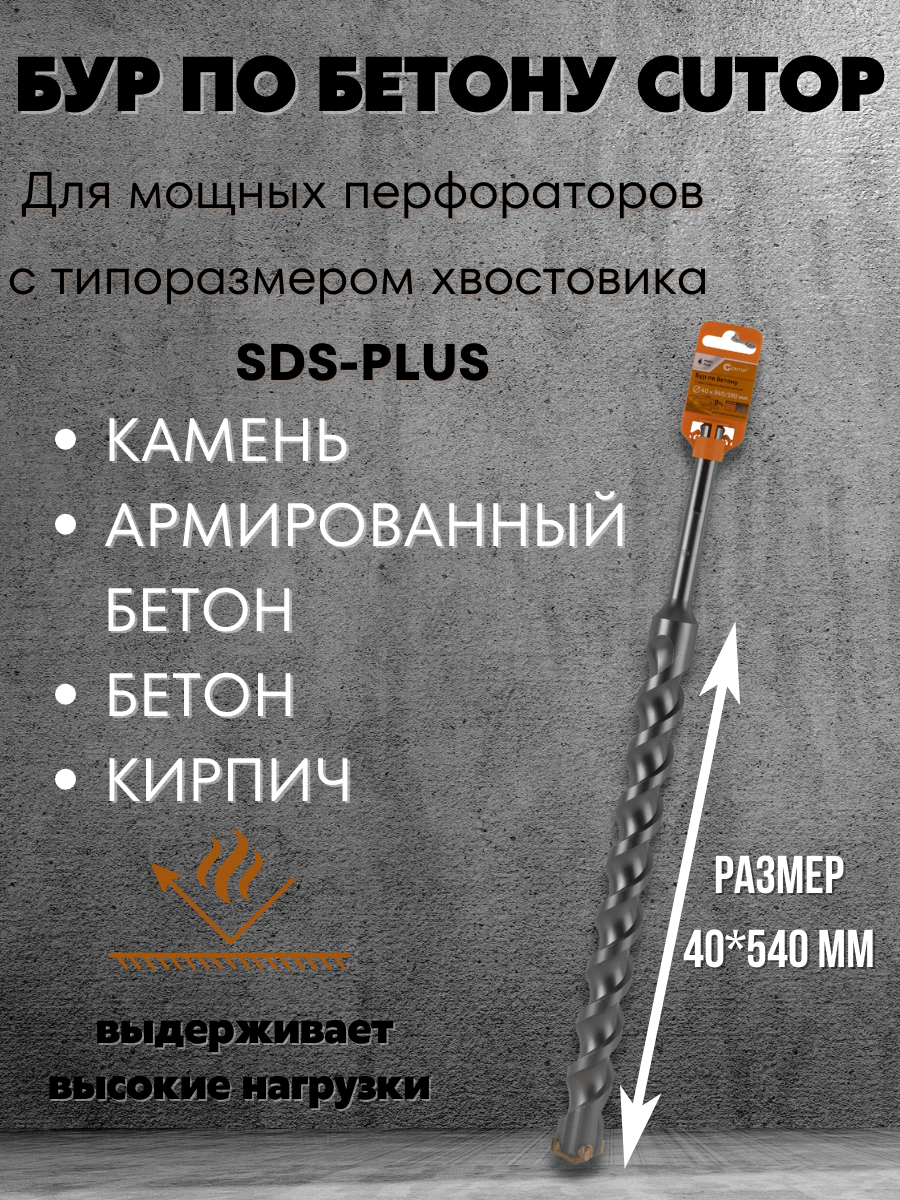 Бур по бетону CUTOP, Profi Plus, с крестовым наконечником, SDS-Max, 40х540 мм
