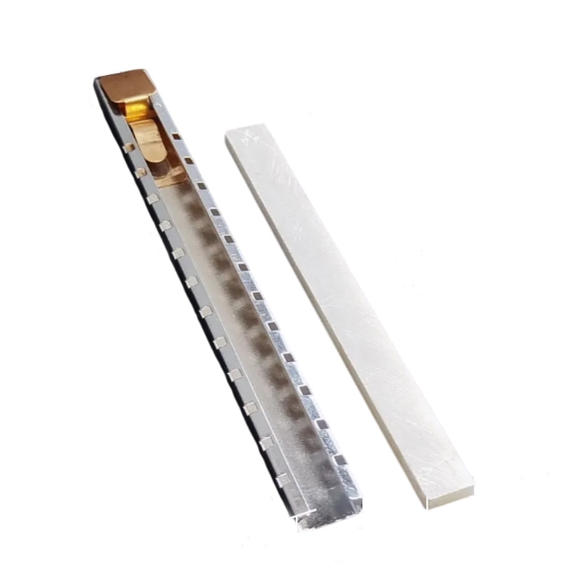 Держатель мелка сварщика предназначен для мелков сварщика тальковых и мраморных, прямоугольного типа. Прост и удобен в использовании. Этот держатель изготовлен из прочных и долговечных материалов, обеспечивающих его надежность и долговечность. Он оснащен удобным крючком и крепежной клипсой которой можно регулировать положение мелка до необходимой длины. Держатель имеет многоразовое использование. Мелок сварщика тальковый (брусок тальк, размеры 5х12х125мм). Это идеальное дополнение для любого сварщика, строителя или ремонтника, стремящегося к эффективной организации своего рабочего пространства.