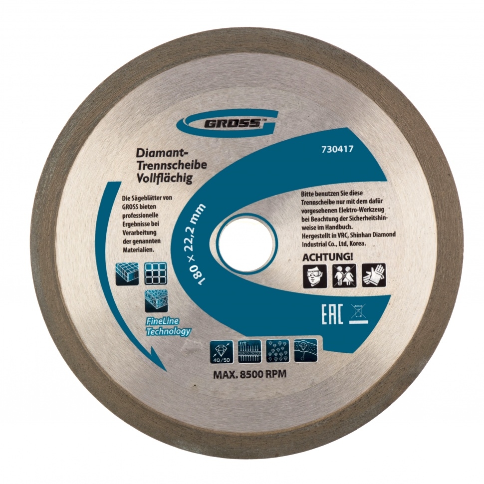 Диск алмазный сплошной мокрое резание 180х22,2 мм Gross