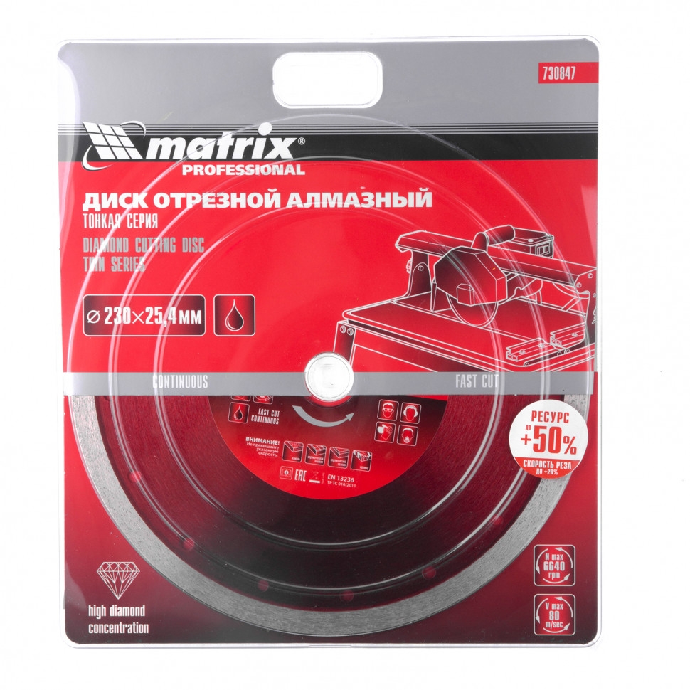 Диск алмазный тонкий сплошной мокрое резание 230х25,4 мм Matrix