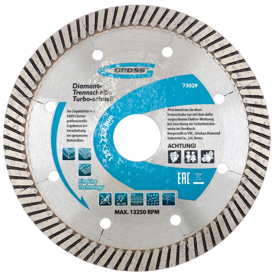 | Диск алмазный турбо с лазерн.перфорац. сухое резание 125х22,2 мм Gross | 73029 | 1 шт. |