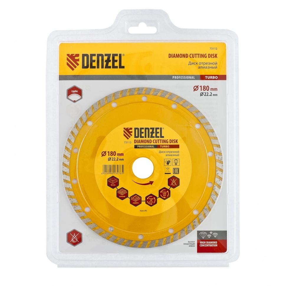 Диск отрезной алмазный сегментный турбо сухое резание 180х22,2 мм Denzel