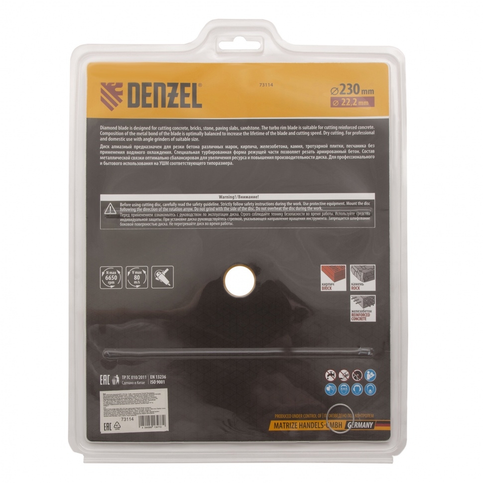 | Диск отрезной алмазный сегментный турбо сухое резание 150х22,2 мм Denzel | 73110 | 1 шт. |