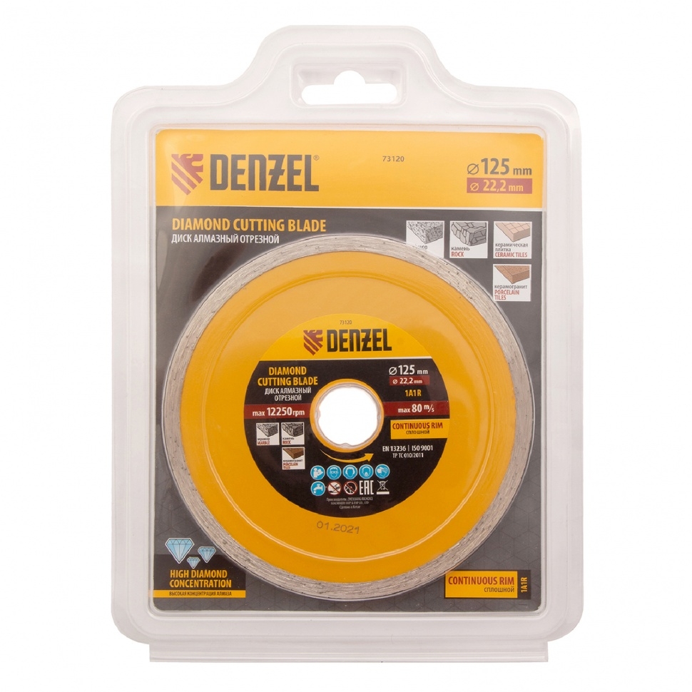 Диск отрезной алмазный сплошной мокрое резание 125х22,2 мм Denzel