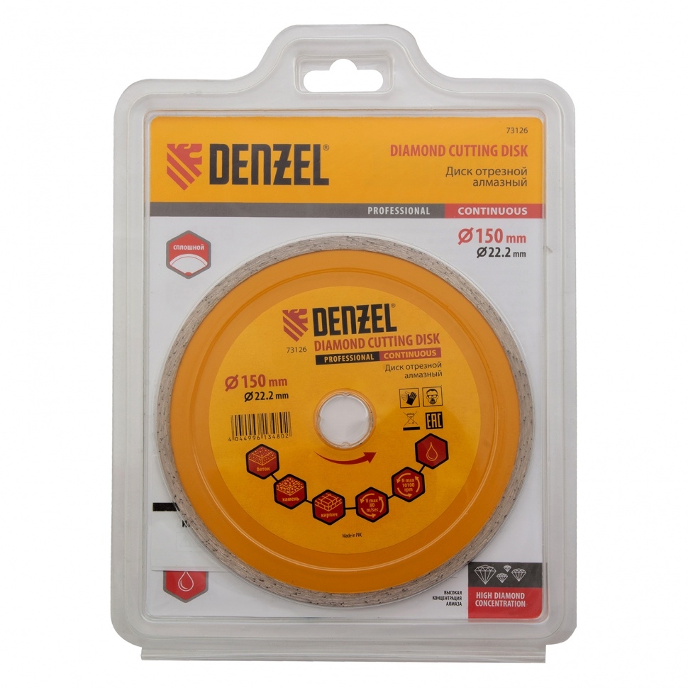 Диск отрезной алмазный сплошной мокрое резание 150х22,2 мм Denzel