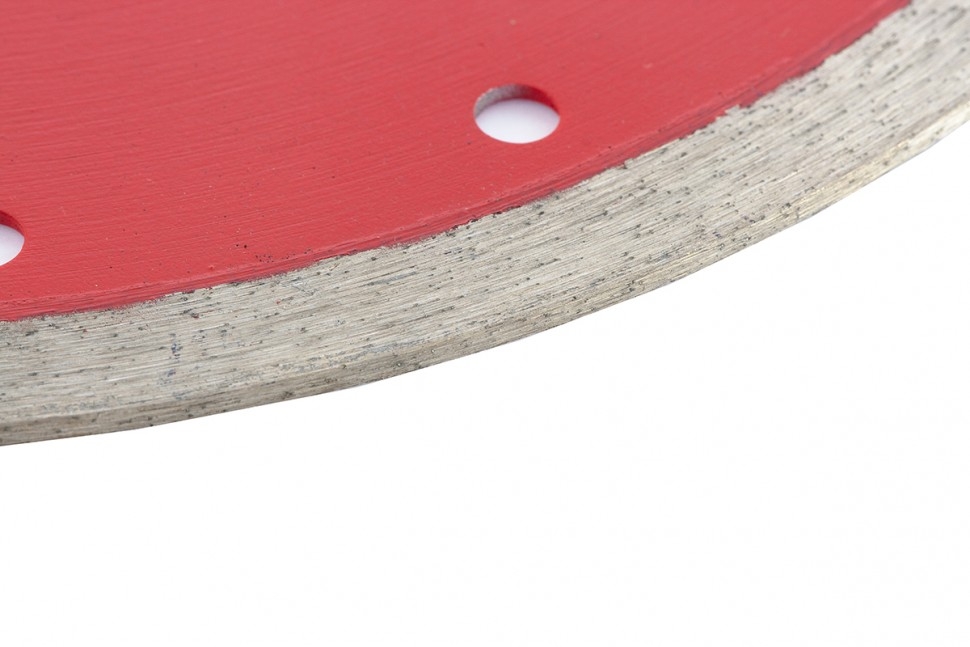 Сплошная форма и перфорированный корпус позволяют добиться высокого качества реза и предотвращают появление сколов. Режущая часть шириной 10 мм с высокой концентрацией алмазов способствуют увеличению рабочего ресурса диска на 50%. Высокий ресурс и износостойкость рабочей части достигается за счет металлической связки. Метод ускоренного горячего прессования улучшает сопротивление режущей части нагрузкам и делает мокрое резание более качественным.
