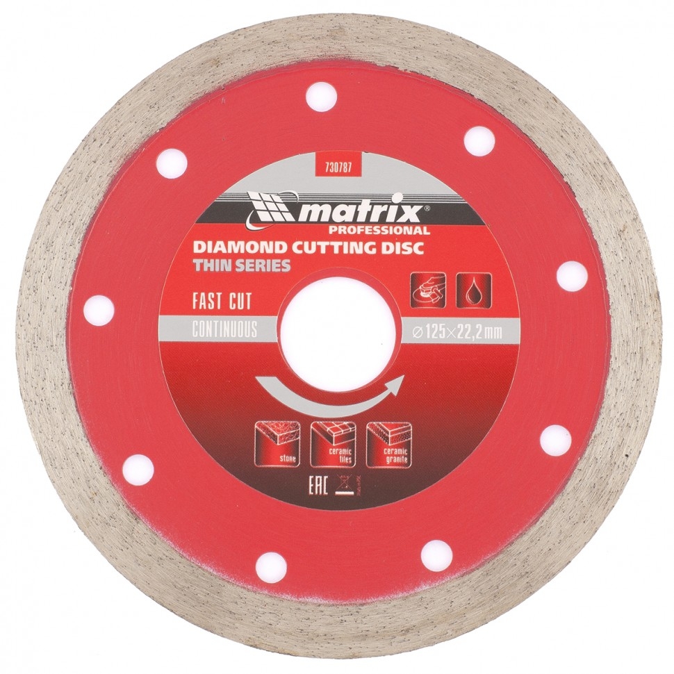 Диск отрезной алмазный сплошной тонкий сухое резание 125х22,2 мм Matrix