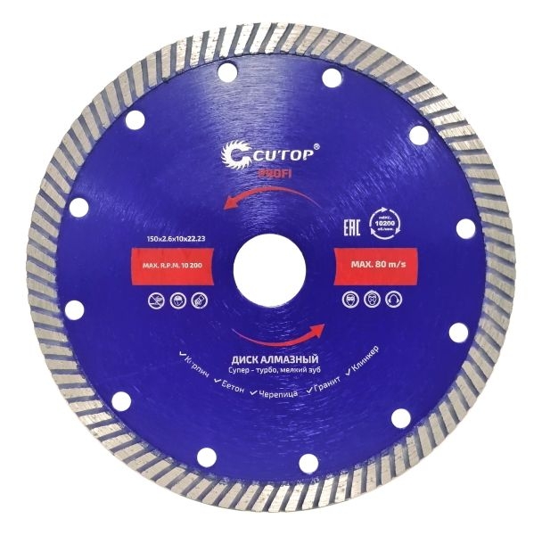 Диск отрезной алмазный сверхтонкий супер-турбо мелкий зуб CUTOP 150х2,6х10,0х22,2 мм