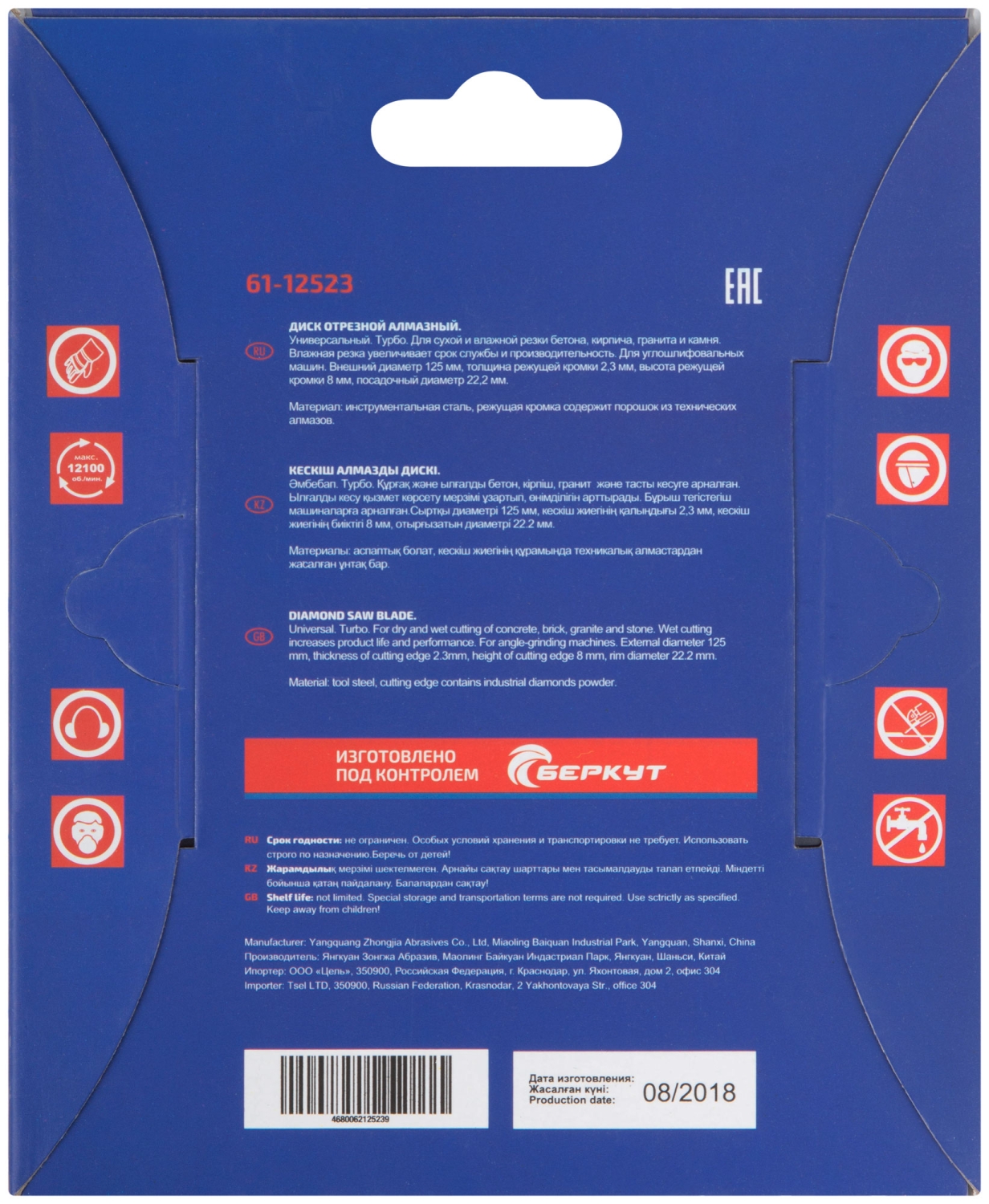 Диск отрезной алмазный турбо CUTOP 125х2,3х8,0х22,2 мм