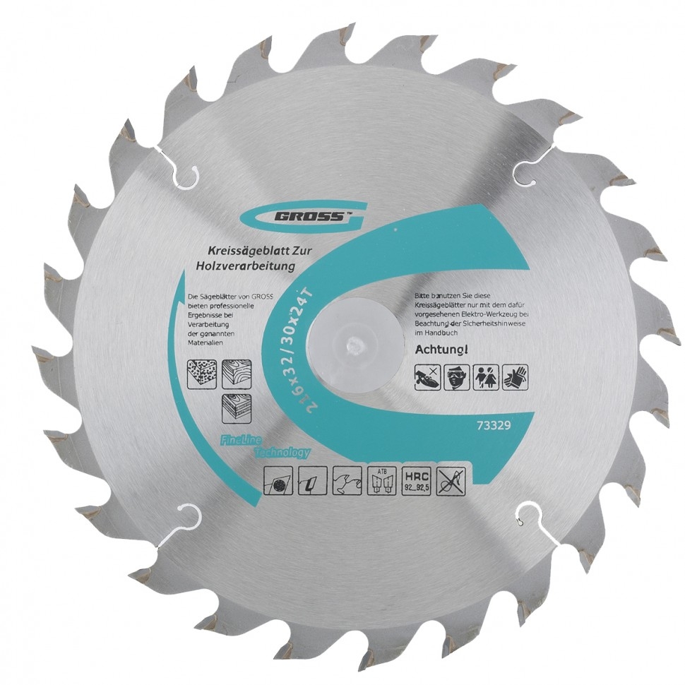 Диск пильный по дереву 24 зуба + кольцо 32/30 мм Gross