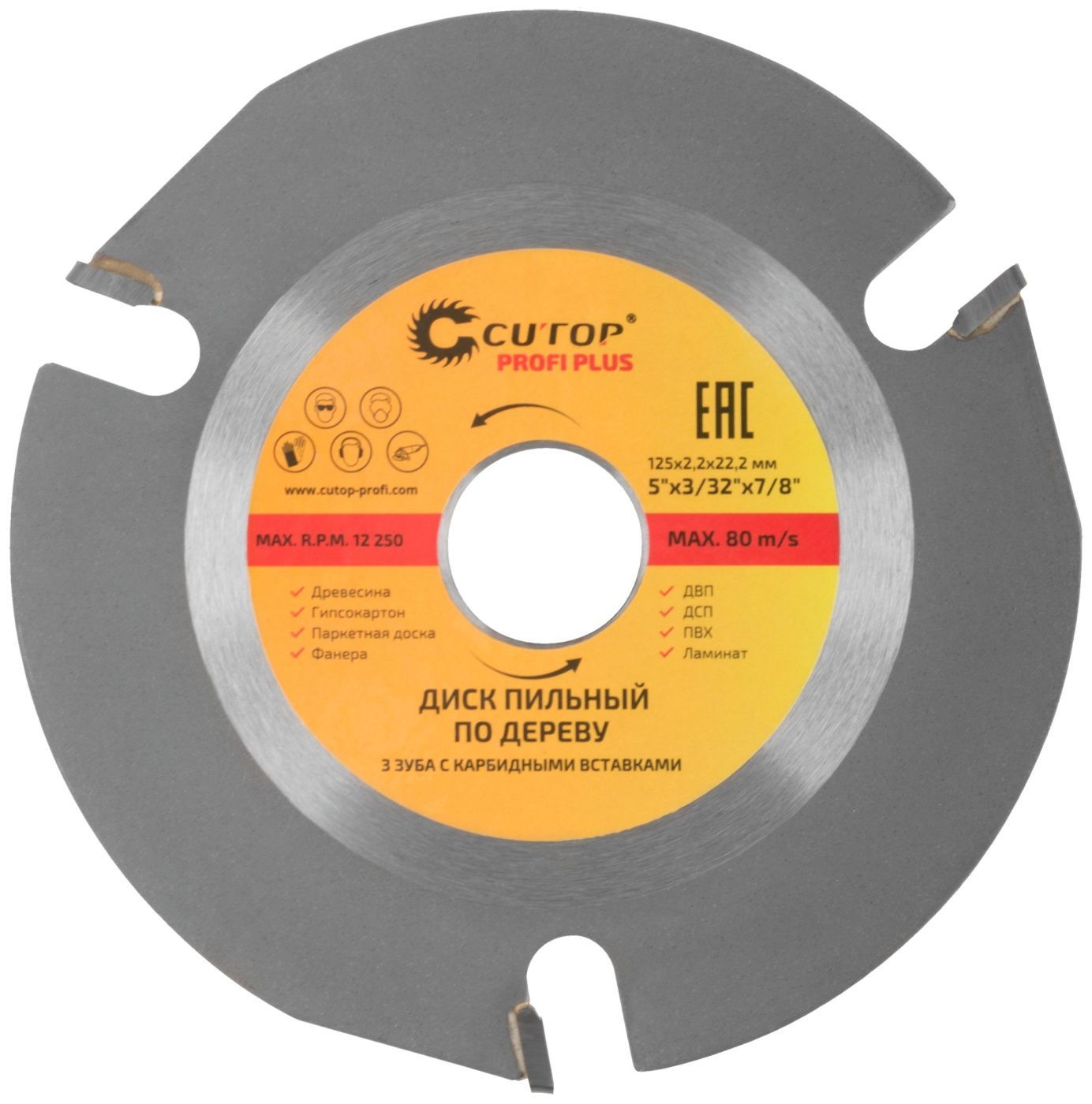 Диск пильный по дереву для УШМ 3 зуба с карбид.вставк.Cutop Profi Plus 125х2,2х22,2 мм