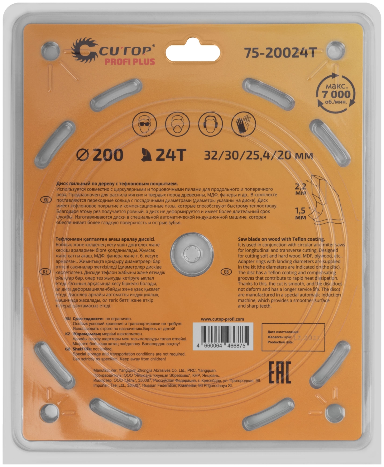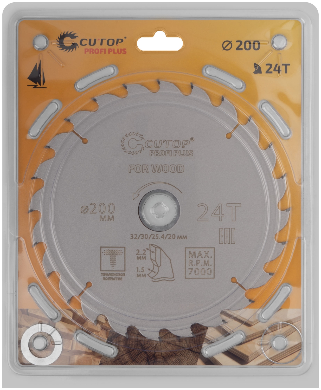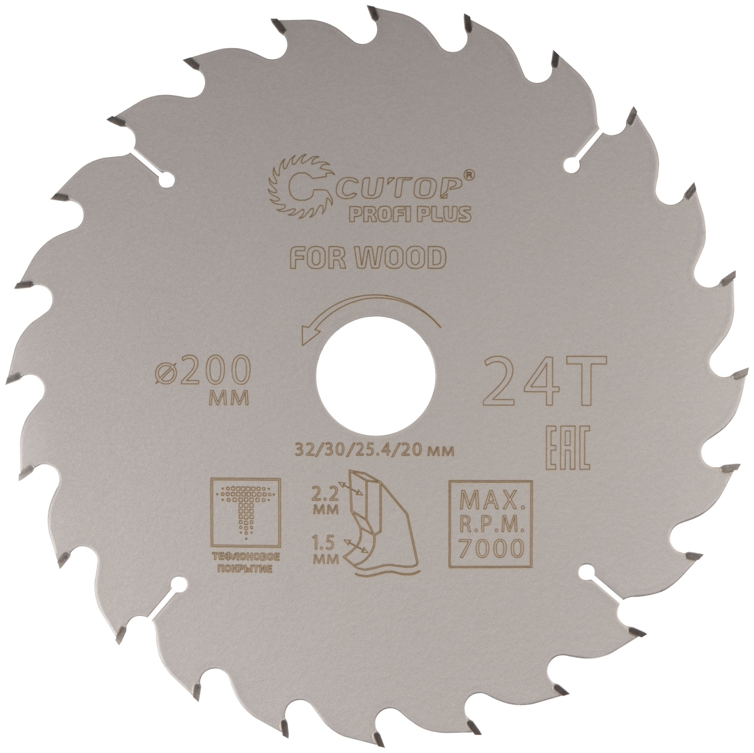 Диск пильный по дереву с тефл.покр.24Т CUTOP Profi Plus 200х1,5/2,2х32/30/25,4/20 мм