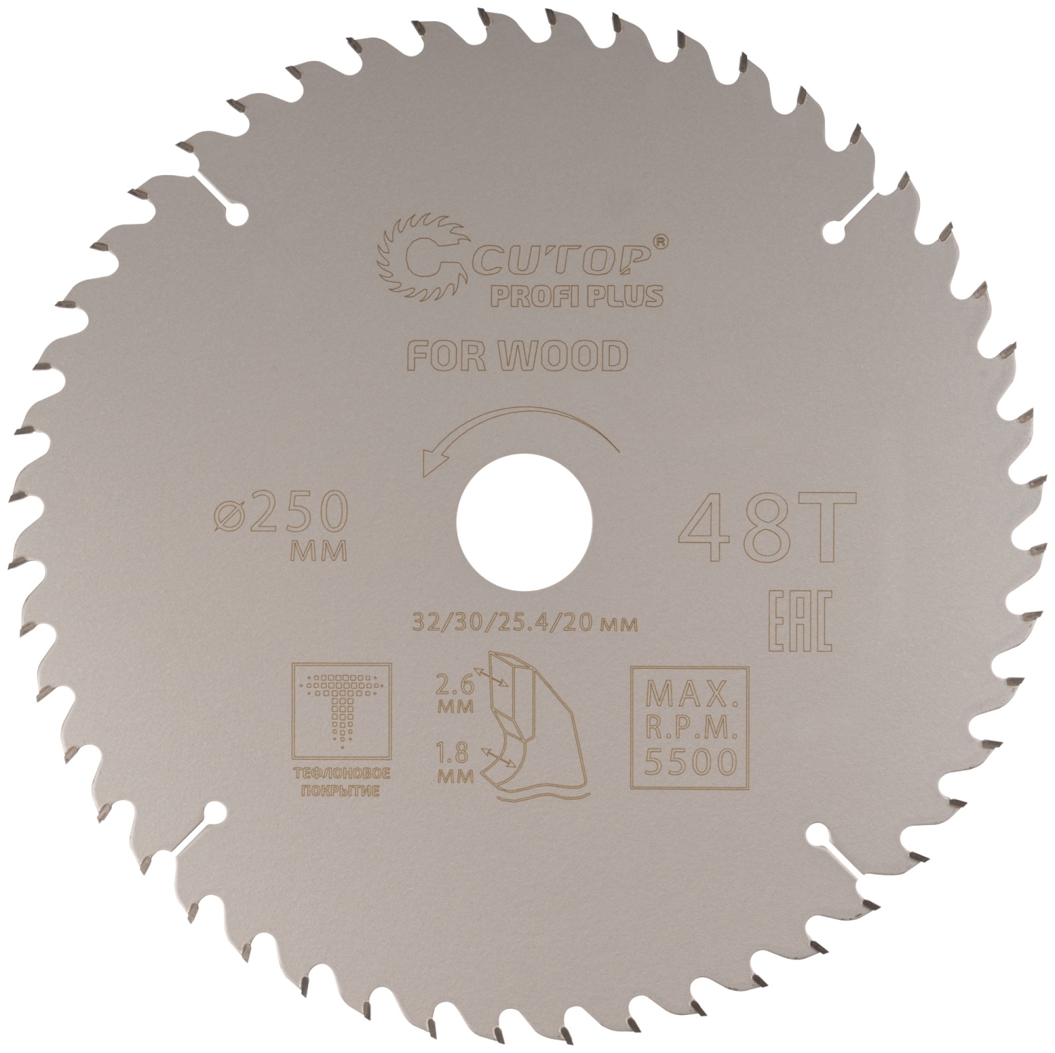 Диск пильный по дереву с тефл.покр.48Т CUTOP Profi Plus 250х1,8/2,6х32/30/25,4/20 мм