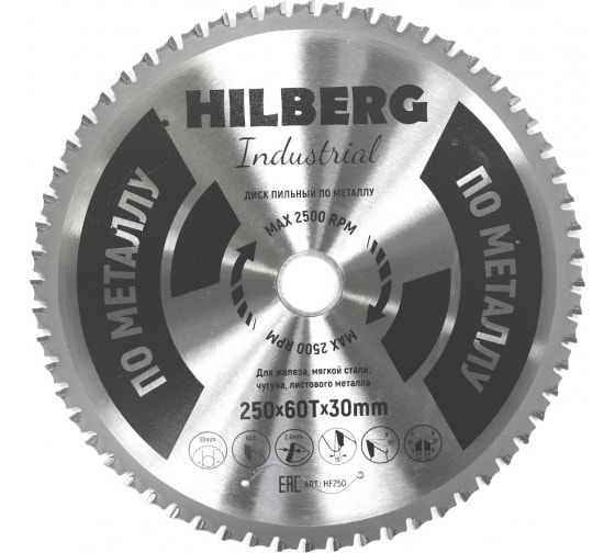 Диск пильный по металлу 250х60Т*30 мм Hilberg Industrial