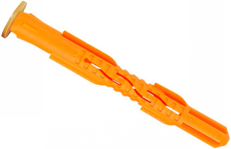Изготовлен из морозостойкого полипропилена, что обеспечивает его долговечность и устойчивость к низким температурам. Дюбель не требует предварительной установки шурупа или крепежа внутри. Подходит для монтажа в материалы, включая легкий бетон, кирпич и пустотелые блоки.