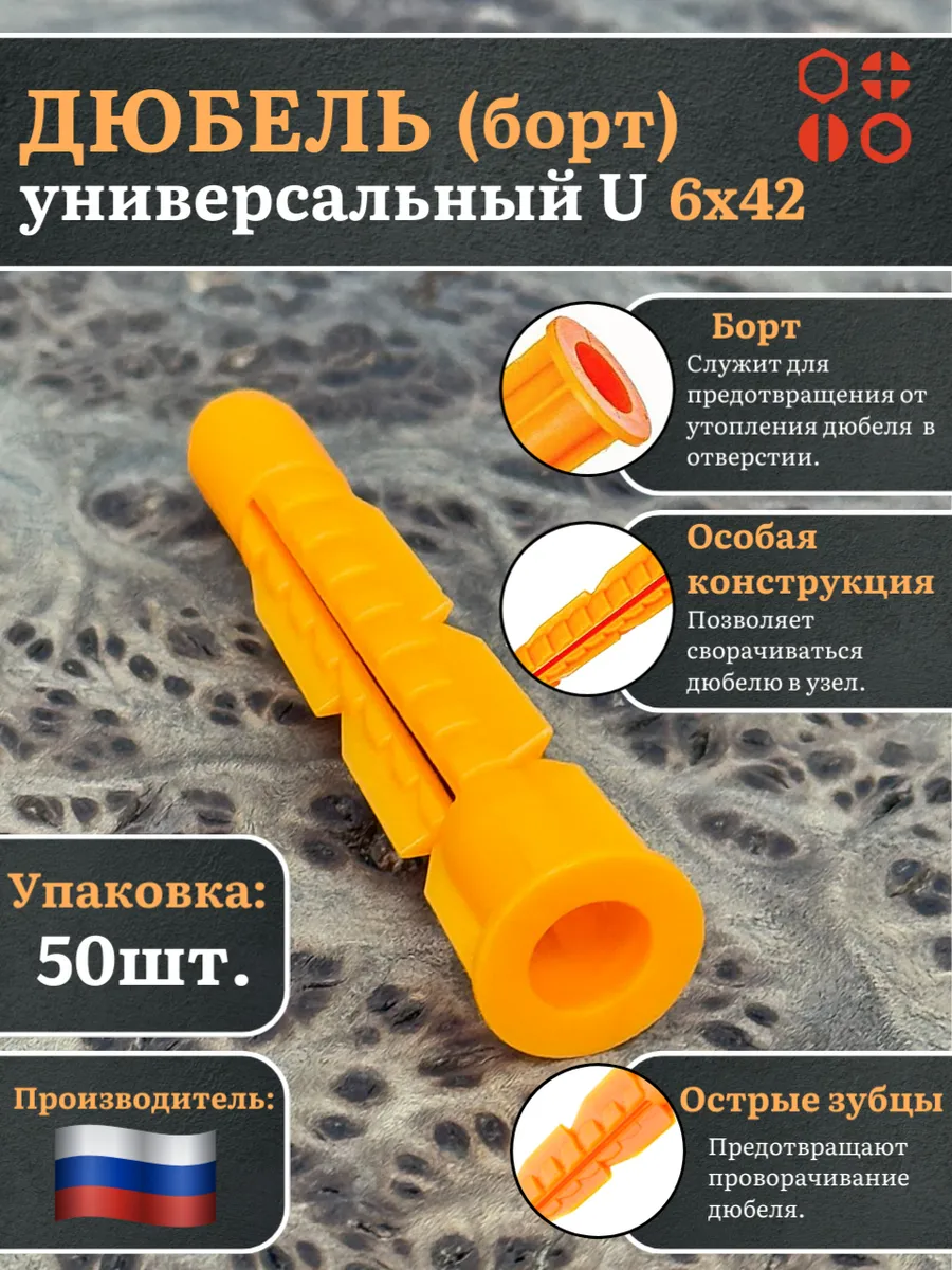 Дюбель (борт) универсальный U 6х42, 50 шт.