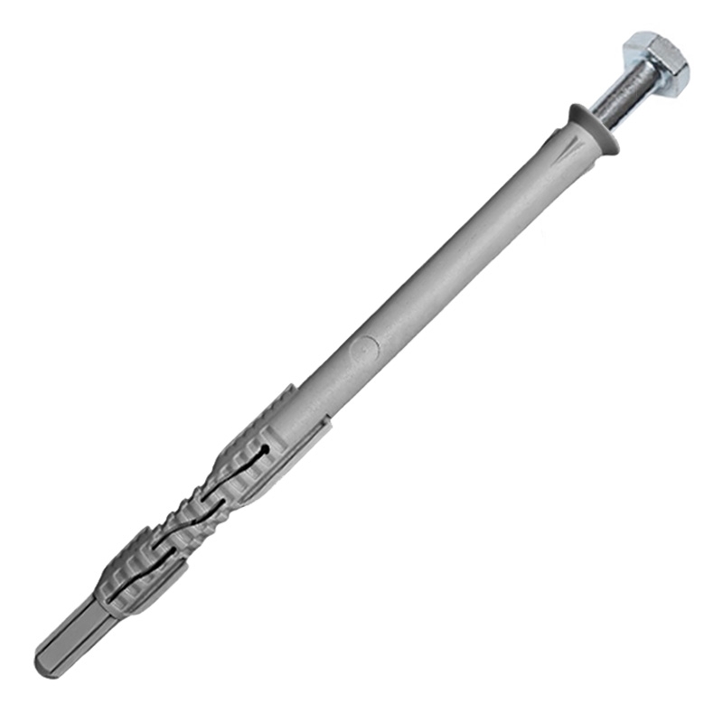 Имеет потайной бортик, позволяющий надежно зафиксировать средненагруженные конструкции, имеющие раззенкованные отверстия или с возможностью утопить головку крепежа в закрепляемом материале. Длина распорной зоны составляет 70 мм, что позволяет надежно закрепиться во всех материалах основания. Наличие стопорных усиков позволяет дюбелю не прокручиваться в пустотелых основаниях. Применяется для сквозного монтажа. Шуруп, входящий в комплект, изготовлен из электрооцинкованной стали, что позволяет использовать дюбель в условиях слабой агрессивной среды.