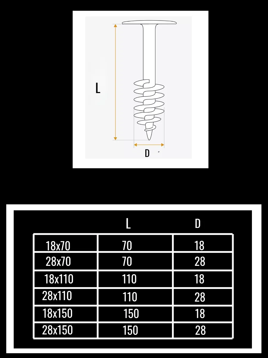 позволяет скреплять слои теплоизоляции между собой без использования клеевых составов и независимо от погодных условий. Выполняется из стеклонаполненного полиамида и обладает высокими прочностными характеристиками. Диаметр резьбы 18 или 28 мм.