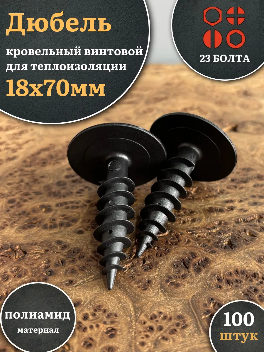 Дюбель кровельный винтовой для теплоизоляции 18х70 мм, 100 шт.
