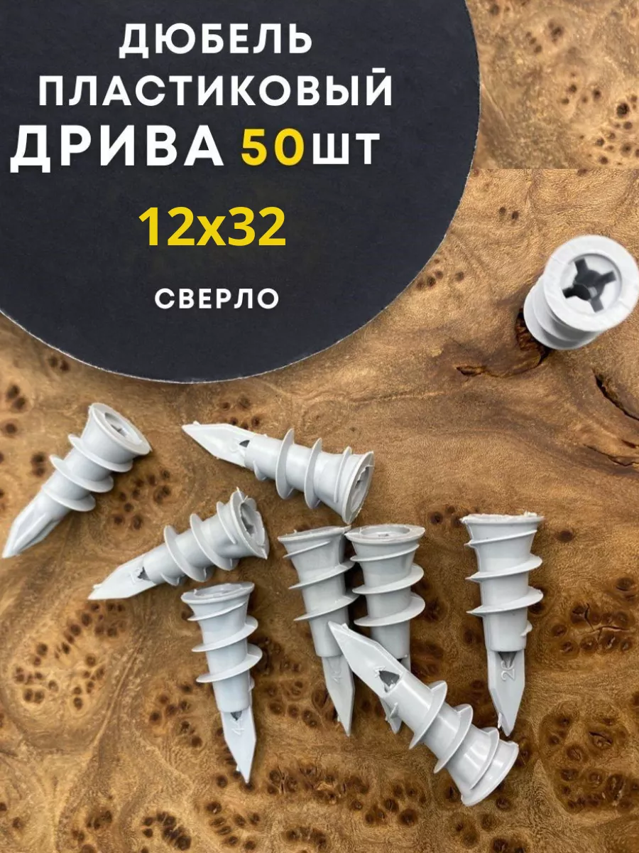 Дюбель пластик ДРИВА сверло 12х32, 50 шт