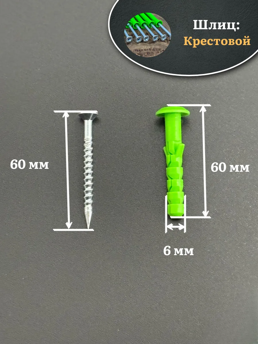 | Дюбель с шурупом ГРИБ 6х60 зеленый, 100 шт | РКГ00016686ф100 | 1 шт. |