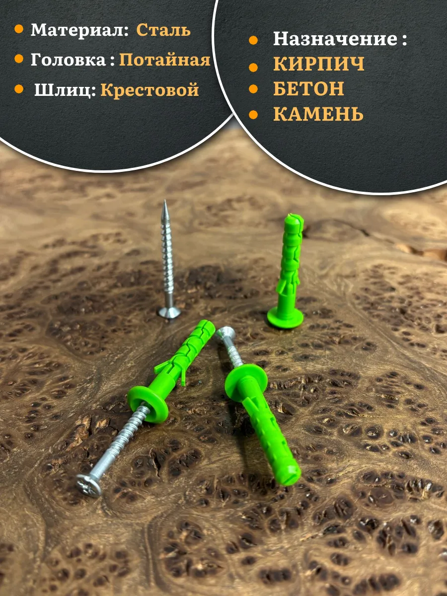 Дюбель с шурупом ГРИБ 6х60 зеленый