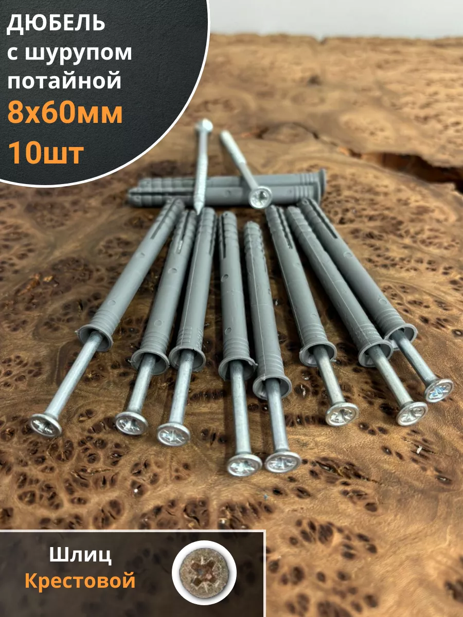 | Дюбель с шурупом потайной 8х60 , 10 шт. | B21100806062200 | 1 шт. |