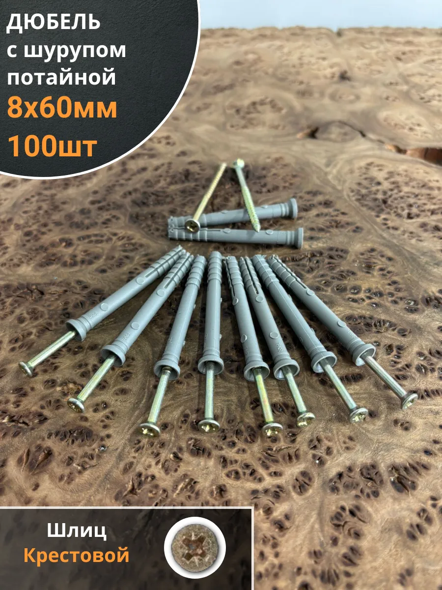 | Дюбель с шурупом потайной 8х60 , 100 шт. | B21100806062200ф100 | 1 шт. |