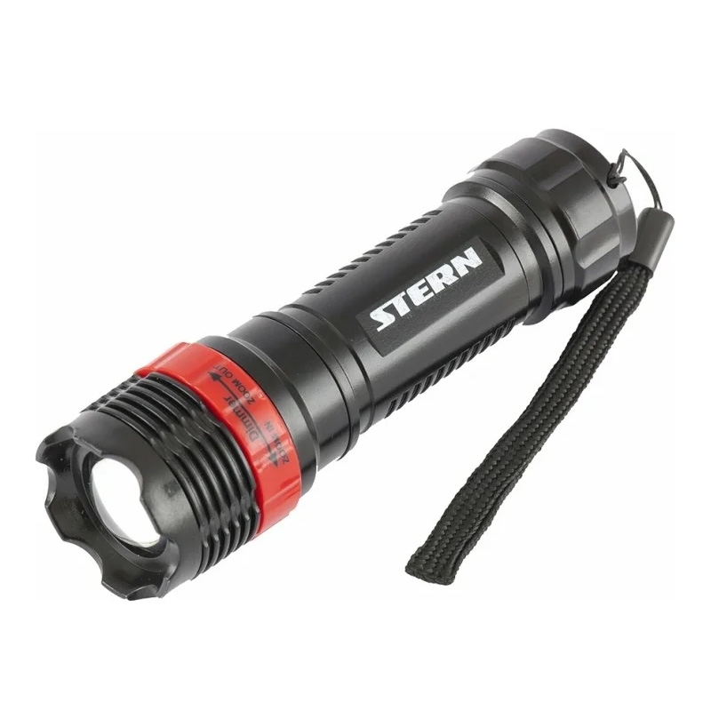 Фонарь бытовой пластиковый корпус 1 Вт LED ремешок зум 3реж. 100%-50%-строб 3хААА Stern