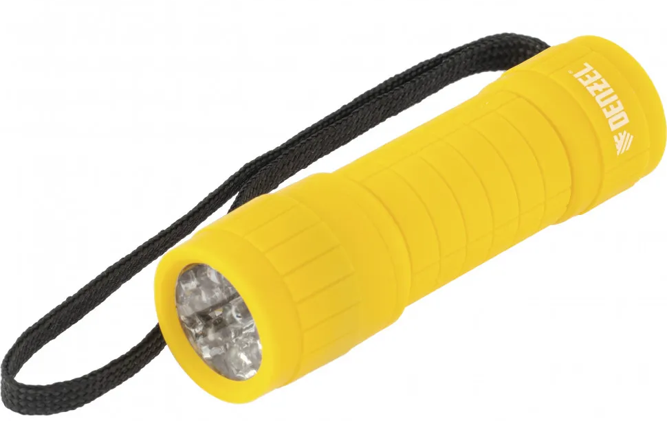 Фонарь светодиодный, желтый корп. с мягким покр., 9 LED 3хААА Denzel